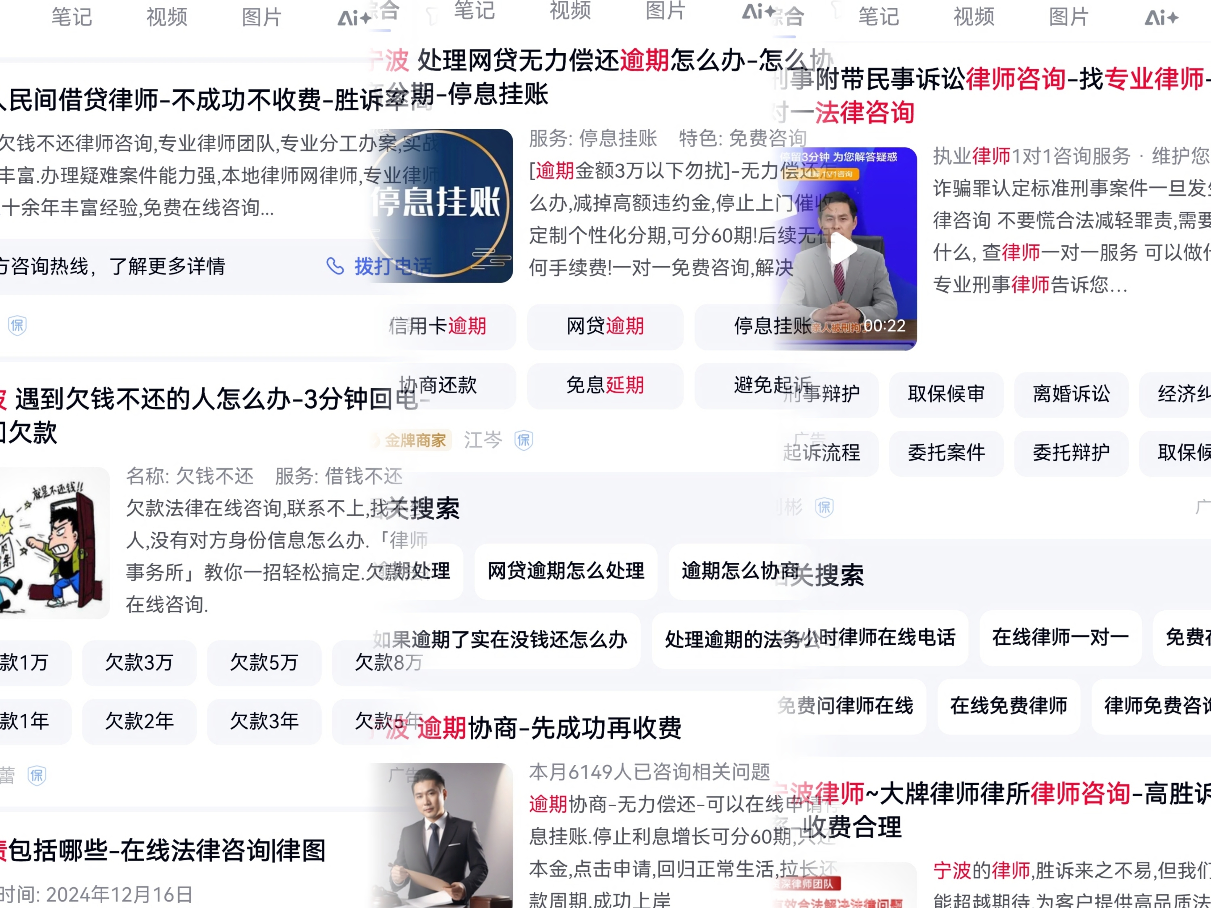 律师行业目前主要合作运营项目为:律师-刑事律师、婚姻律师、商业合同、法律咨询、个人债务、逾期咨询等客户,从开户到运营以及后期转化维护,基本做到让客户花更少的钱,转化更多的线索,也秉承了公司对客户的高人才高配置解决售前开户、售中运营、售后咨询一条龙服务的营销推广全案落地。